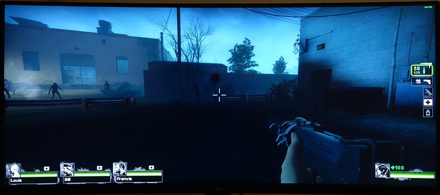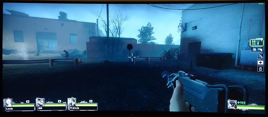 Der LG 34UC89G-B bietet neben 144 Hz auch G-Sync an. G-Sync sorgt dafür, dass die Framerate des Spiels mit der Bildwiederholfrequenz des Monitors abgeglichen wird. Dadurch wird Tearing zuverlässig verhindert. Das gelingt dem Testmodell sehr gut, und da es nur eine UWFHD-Auflösung besitzt, sind bei entsprechend aktueller Hardware hohe Frameraten möglich, und die Stärken werden voll ausgeschöpft.