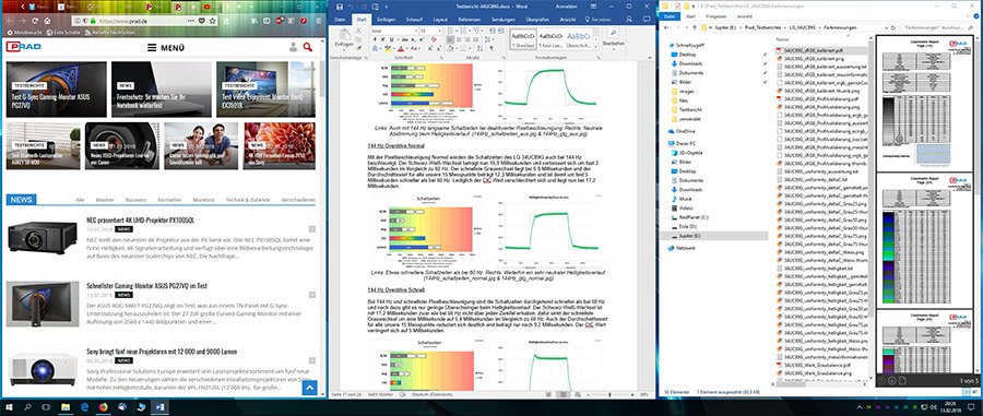 Nach dem Praxistest haben wir mit dem LG 34UC89G-B noch den Lesbarkeitstest in unserem Testtool PixPerAn durchgeführt. Mit 144 Hz läuft der zu lesende Text sehr viel schneller über den Bildschirm als bei 60 Hz, und somit kann bei 144 Hz der Text nur maximal bis Stufe 8 fehlerfrei gelesen werden. Wenn wir den Monitor auf 60 Hz einstellen, ist die Lesbarkeit bis Stufe 10 gegeben. Ob die Reaktionszeit auf „Normal“ oder „Schnell“ eingestellt wird, hat dabei keinen Einfluss. Vermutlich kommt PixPerAn mit der hohen Bildwiederholfrequenz nicht zurecht. Das ist aber nicht weiter tragisch. Dass die Spiele-Eigenschaften des LG 34UC89G-B überzeugen können, hat der Monitor bereits bewiesen.
