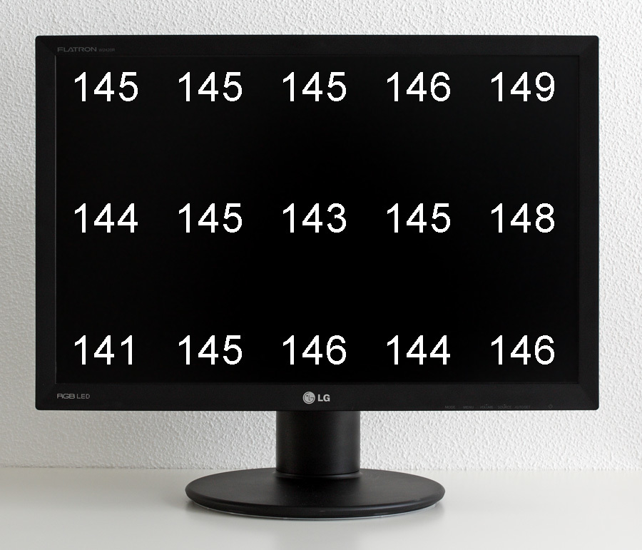Ein Blick auf die Helligkeitsabweichungen zeigt, dass LG beim W2420R sicherlich eine Kompensationsschaltung implementiert, die die Bildhomogenität über die Angleichung einzelner, während der Produktion ausgemessener, Bildsegmente verbessern soll. Die hervorragenden Ergebnisse lassen in jedem Fall keinen anderen Schluss zu. Zwar verringert man durch Anpassung des Weißpegels den maximalen Kontrast, aber die Schaltungen von NEC („ColorComp“) und Eizo („DUE“) haben bereits bewiesen, dass der Nutzen deutlich überwiegt.
