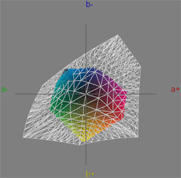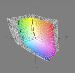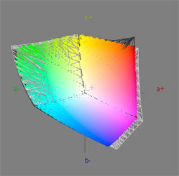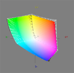 Den Druckfarbraum Isocoated deckt der LG W2600HP vollständig ab, ebenso fast den für den Alltag wichtigen sRGB-Farbraum. Der neue Standard ECI 2.0, der praktisch alle relevanten Druckverfahren und Bildtechnologien abdeckt, stellt die höchsten Ansprüche an den Farbumfang und hier fehlen angesichts einer Abdeckung von 93 Prozent noch ein paar Punkte zur 100-Prozent-Marke. Dafür wird AdobeRGB mit 98 Prozent sogar deutlich besser abgedeckt, als es der NEC LCD2690WUXi vermag. Insgesamt ist der Farbumfang sehr gut.