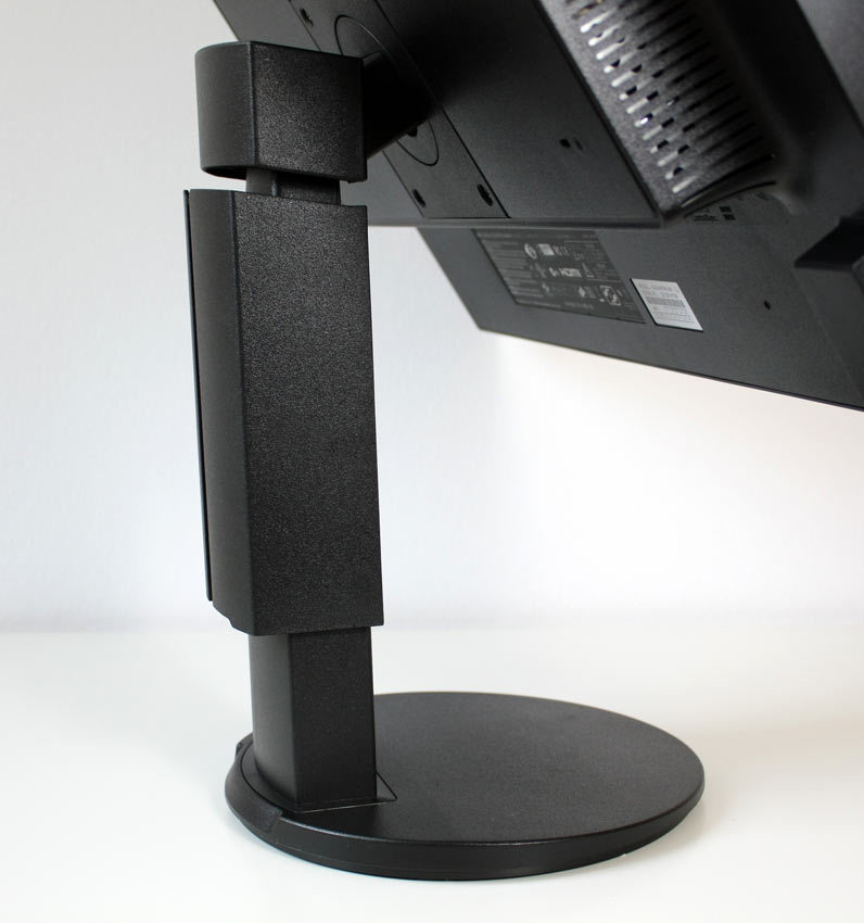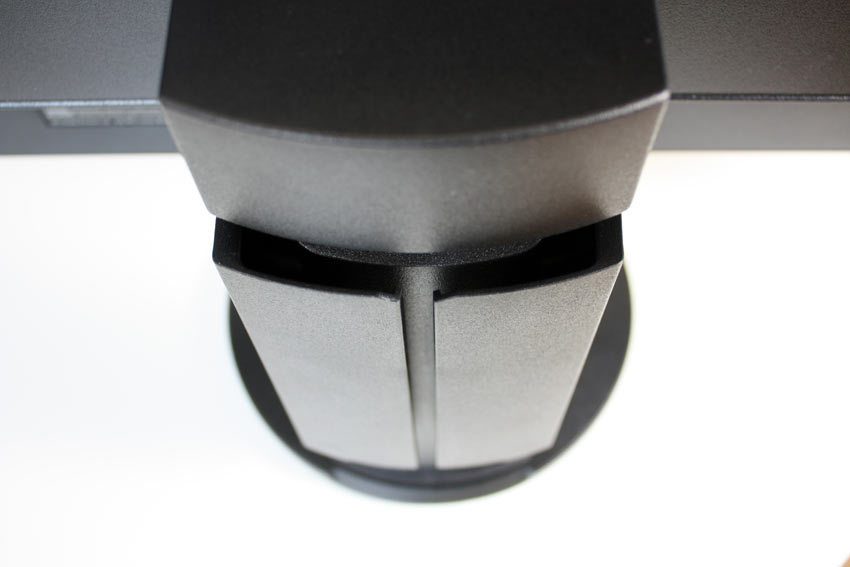 Der Displayrahmen ist allerdings zu dünnwandig ausgefallen und daher entstehen am unteren Displayrand größere Spaltmaße zwischen Rahmen und Panel. Die Mechanik arbeitet ausgezeichnet und leichtgängig, nur die Höheneinstellung hakelt beim Absenken des Displays ein wenig.