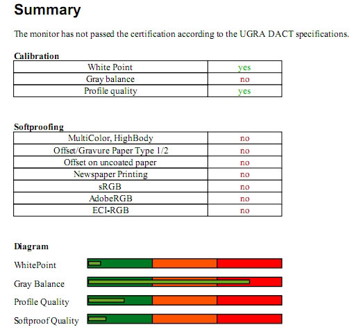 Abschließend haben wir den NEC MultiSync EA261WM auf die Vorgaben der UGRA kalibriert (5800K, Gamma 1,8 und Helligkeit 120 cd/m²), um seine Farbstabilität und Tauglichkeit für die digitale Druckvorstufe / Softproof zu bestimmen. Das Ergebnis zeigt: Der NEC EA261WM besteht die UDACT-Zertifizierung nicht. Die Abweichungen und Verwerfungen im Graustufenbereich sind definitiv zu hoch, was die neuen Vorgabewerte der UGRA angeht.
