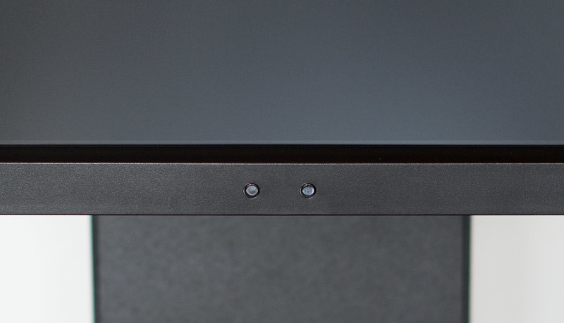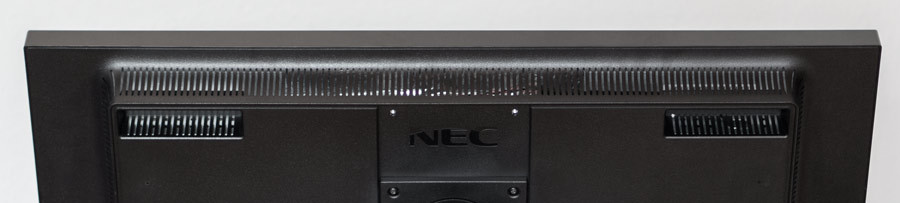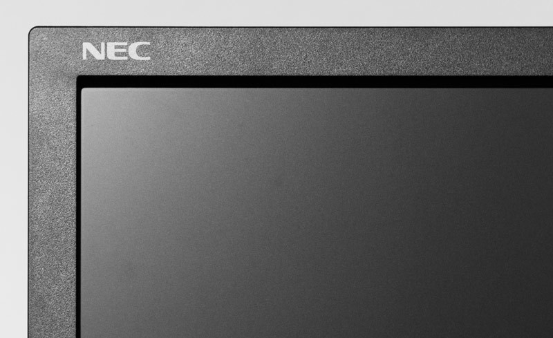 Kleine Details wie die in die obere rechte Ecke des Rahmens versetzte weiße NEC-Schrift untermalen das selbstbewusste Auftreten des EA294WMi. Manch ein Hersteller setzt sein protziges und womöglich auch noch in Chrom gehaltenes Logo in die Mitte des unteren Gehäuse-Rahmens. Beim NEC ist an dieser Stelle der „Human Sensor“ platziert, zwei in Gehäuse-Farbe eingebaute Infrarot-LEDs, welche kaum auffallen. Oben rechts befindet sich ebenfalls in Weiß die Modelbezeichnung „MultiSync EA294WMi“.