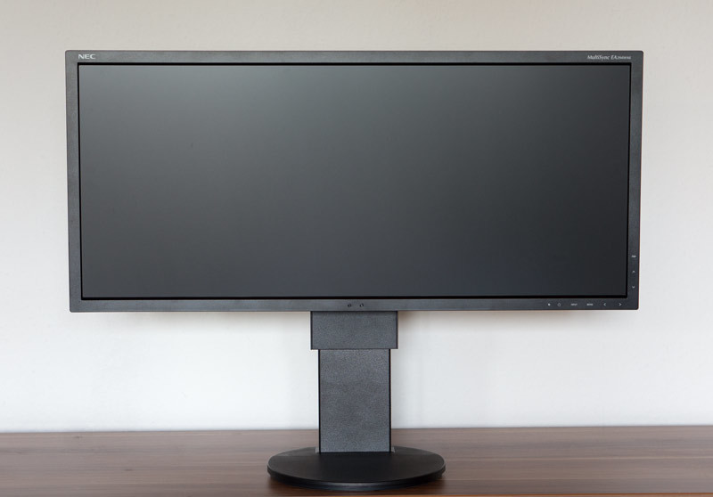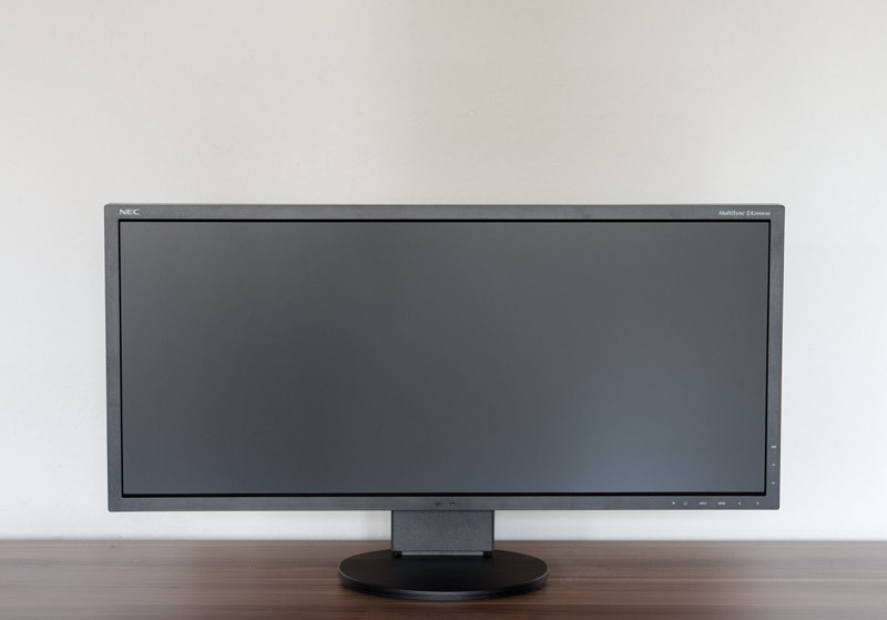 Das Auffällige am EA294WMi ist natürlich die enorme Breite des Monitors, ansonsten gibt sich das Display dezent und schlicht im Design. Der NEC EA294WMi setzt im Gegensatz zu seinen Maßen und Funktionsumfang auf Minimalismus. Das lässt ihn in erster Linie sehr professionell wirken und deswegen sehr edel und dezent.