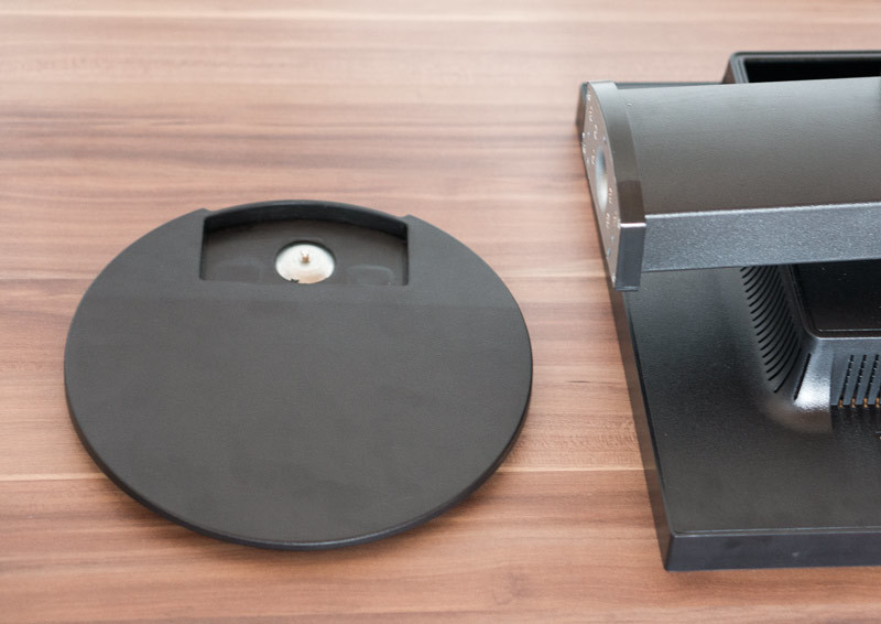 Der mitgelieferte Standfuß ist einfach montiert und sehr stabil. Er ermöglicht eine Drehung von + und – 170°. Der Fuß hat eine flache Oberfläche und kann somit als Abstellfläche verwendet werden.