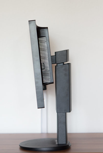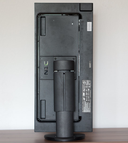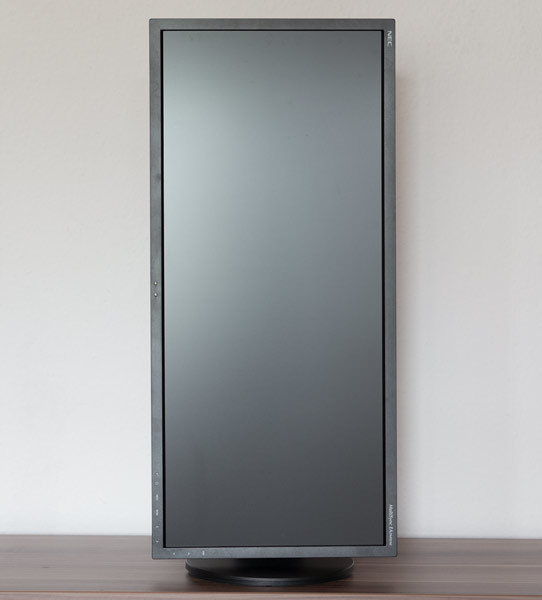 Die Mechanik arbeitet einwandfrei und leichtgängig. Insgesamt hinterlässt der NEC ein sehr wertiges Gefühl. Für eine Drehung in den Pivotmodus muss das Panel erst nach hinten geneigt werden.