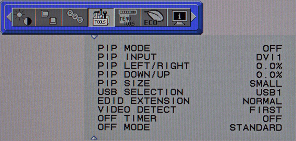 Mit den Auswahloptionen dieses Menüpunktes wird insbesondere die Bild-in-Bild Funktionalität gesteuert. Die Funktion zur Verbesserung der Bildhomogenität (ColorComp) ist nun nicht mehr hier zu finden. Sie wurde komplett in das erweiterte Menü verschoben.