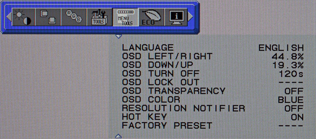 Geblieben ist der Zugriff auf die Sechs-Achsen-Farbkorrektur, die aber, angesichts des Leistungsumfangs der Elektronik über das erweiterte OSD, keine Rolle im realen Einsatz spielen dürfte. Erschwerend kommt hinzu, dass die konkrete Umsetzung starke Einschränkungen bedingt. Hier verhält sich der NEC PA271W wie die bisher getesteten Modelle aus der „90er“-Reihe.