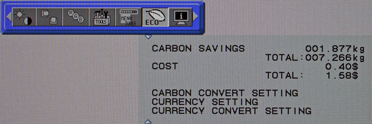 Rein informativen Charakter hat der vorletzte Menüpunkt, mit dem NEC wohl auf der „Green-IT-Welle“ mitschwimmen will. Der konkrete Nutzwert von CO2- und Stromkosteneinsparungswerten darf angezweifelt werden.