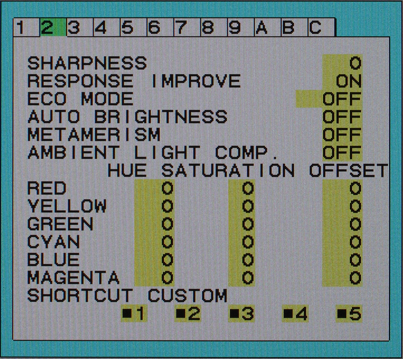 Neben bereits aus dem Standard-Menü bekannten Optionen, können über diesen Menüpunkt u.a. die Overdrive-Schaltung und der Umgebungslichtsensor gesteuert werden. Die „METAMERISM“-Option sollte, wenngleich sie standardmäßig aktiviert ist, ausgeschaltet werden.