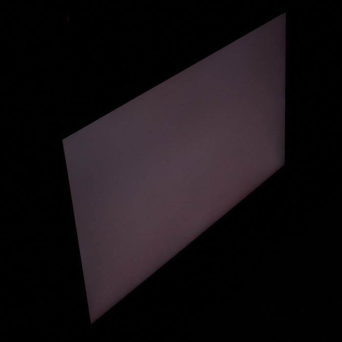 Die Flächenhomogenität ist nach Aktivierung von ColorComp (höchste Stufe) hervorragend. Größere Helligkeits- und Farbabweichungen sind über die Fläche weder messtechnisch noch visuell auszumachen. Mit deaktivierter Funktion wäre das Resultat nur befriedigend.