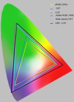 Zusammen mit speziell angepassten Farbfiltern ist es möglich, den anzeigbaren Farbraum deutlich zu vergrößern. Der NEC SpectraView Reference 21 erreicht bis zu 105 Prozent des Adobe RGB und bis zu 101 Prozent des NTSC Farbraums. Herkömmliche TFT-Monitore mit CCFL-Röhren können nur bis zu 70 Prozent des Adobe RGB Farbraums erreichen.