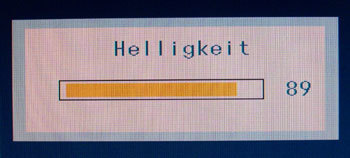 Hier lassen sich Helligkeit und Kontrast anpassen. Auch bei Sperrung der Menüeinstellungen bleiben diese Optionen anwählbar. Voreingestellt sind eine Helligkeit von 100 und ein Kontrast von 75.