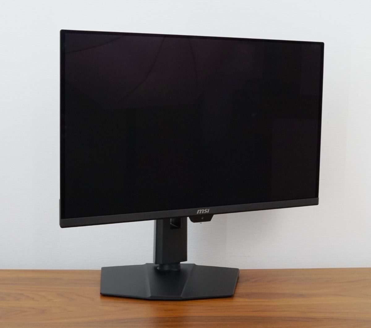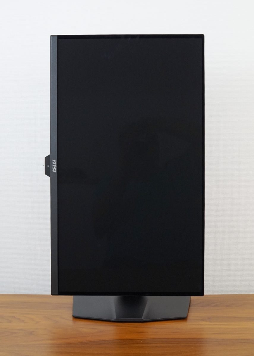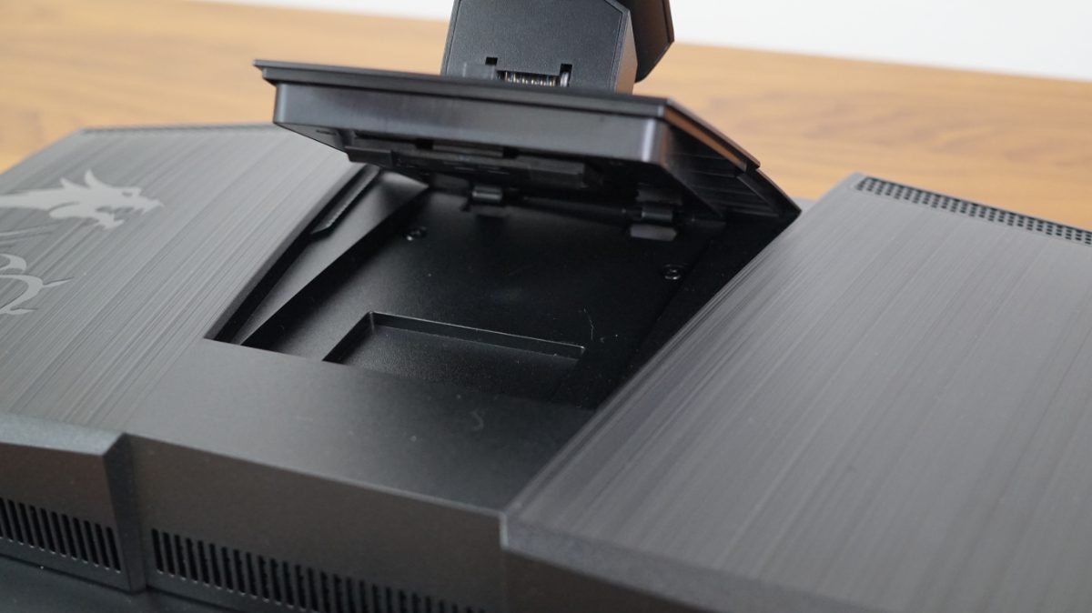Normalerweise schiebt man das Standbein so weit auf den Fuß, bis kein Spalt mehr vorhanden ist, was beim MSI 271QRDE QD-OLED X50 nicht der Fall ist. Die Konstruktion des „schwebenden“ Standbeins ist nicht nur optisch gelungen, auch die im Fuß integrierte Drehfunktion weiß zu gefallen.