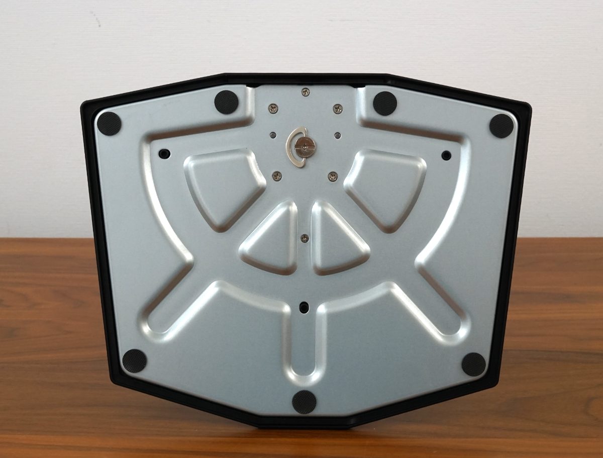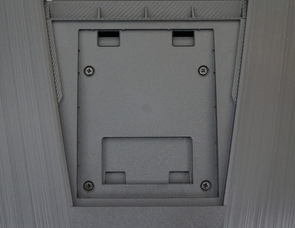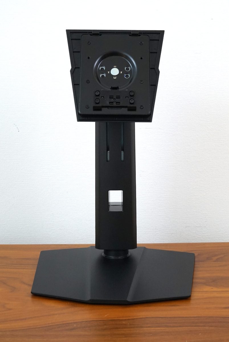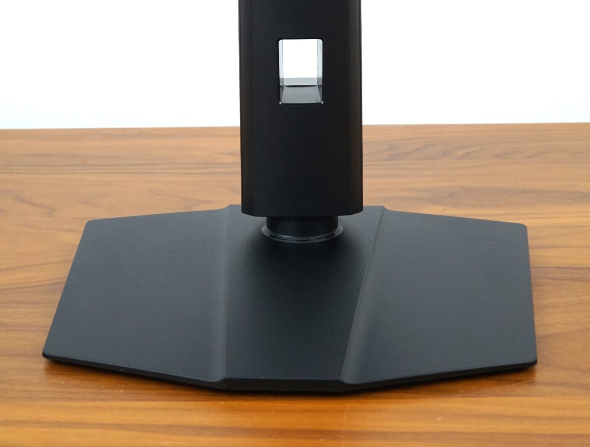 Als Basis dient eine Bodenplatte mit einer Breite von 300 mm und einer Tiefe von 240 mm. Um das Gewicht zu erhöhen und damit dem Monitor einen besseren Stand zu verleihen, verfügt die Bodenplatte über einen Metallkern.