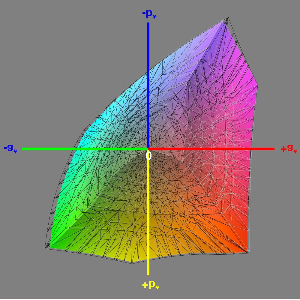 Ein fehlender Farbumfang wird durch ein schwarzes Gitter gekennzeichnet, eine größere Abdeckung durch ein hellgraues.