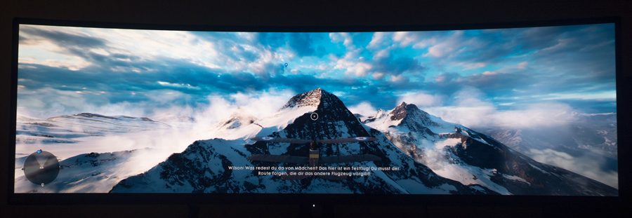 Wie bereits beschrieben, wurde der MSI MPG 491CQPDE QD-OLED in erster Linie für den Spielbetrieb am Computer entwickelt. Die enormen Schaltzeiten und die extrem kurze Latenz machen den Probanden damit zur ersten Wahl bei schnellen Shootern. In Sachen Bewegungsunschärfe sollten zumindest 120 Hz, besser noch 144 Hz erreicht werden. Das ist allerdings schon näher an der Realität als bei anderen bereits getesteten Displays, die mit 180 oder gar 240 Hz bei UHD aufwarten. Der Blur bei 144 Hz ist nicht mehr der Rede wert und sollte selbst gehobenen Ansprüchen genügen. Auch hier besteht die Möglichkeit, (nicht nur) bei weniger performanten GPUs in der Grafikkarten-Software die Auflösung mit RSR (AMD Radeon Super Resolution), FSR (AMD FidelityFX Super Resolution) oder DLSS (Deep Learning Super Sampling) hochrechnen zu lassen – in Spielen wird also intern mit einer geringeren Auflösung gerechnet, die dann wieder auf DQHD hochskaliert wird. Der besondere Kick des MSI MPG 491CQPDE QD-OLED besteht aber in der unglaublichen Immersion, die durch das enorm breite Panel und durch die Krümmung erreicht wird. So wird man geradezu ins Spielgeschehen hineingesogen, was eine tolle Erfahrung ist.