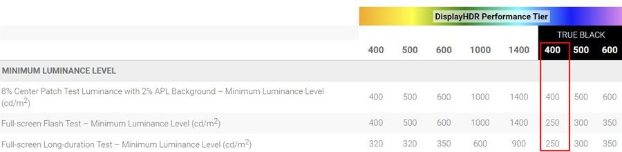 Der MSI MPG 491CQPDE QD-OLED wurde offiziell vom VESA-Konsortium als DisplayHDR True Black 400 zertifiziert. Die Vorgaben werden im „8 % Center Patch Test“ mit 473 cd/m² sowie im „Full-screen Flash Test“ und „Full Screen Long-duration Test“ mit jeweils 294 cd/m² erreicht. Die Black-Level-Testroutinen lassen sich durch uns leider nicht überprüfen. Die restlichen Hürden sind ebenso kein Problem.