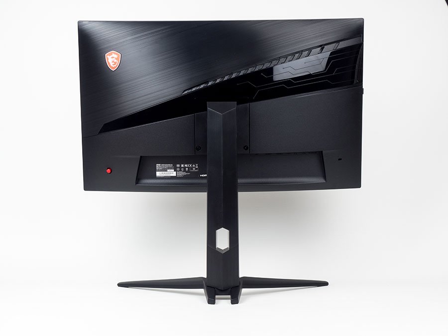 Oben und an den Seiten verfügt der MSI Optix MAG272CQR über ein dreiseitiges rahmenloses Design und ist von einem schmalen Band umgeben. Der untere Rahmen ist 30 mm breit und zeigt mittig das MSI-Logo als Relief. An der Unterseite, etwas eingerückt, befindet sich an der rechten Seite die Power-Taste. Während des Betriebs leuchtet sie weiß und im Standby orange.