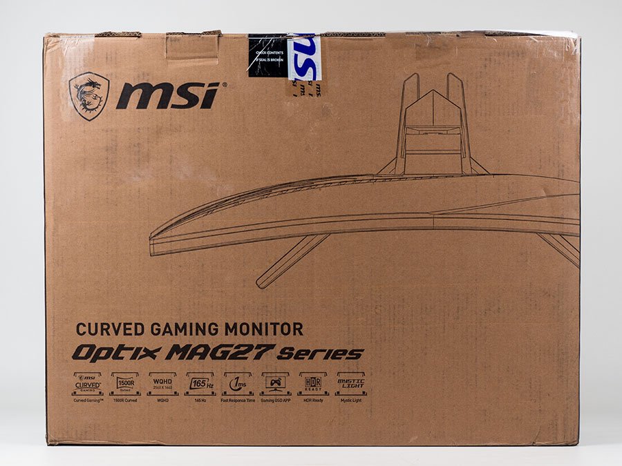 MSI geht bei der Verpackung den vorbildlichen grünen Weg und liefert den MAG272CQR in einem recyclebaren Karton, der recht schmucklos daherkommt. Zur Transporterleichterung verfügt die etwa 13 kg schwere Packung über seitliche Griffmulden.