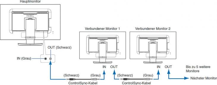 Besonders praktisch ist dabei die integrierte ControlSync-Funktion. Hiermit können die Einstellungen von bis zu acht Bildschirmen in einer Multi-Monitor-Konfiguration über den Hauptbildschirm verwaltet werden. Um ControlSync zu nutzen, müssen allerdings alle Geräte über diese Funktion verfügen und mit einem zusätzlichen Kabel miteinander verbunden sein.