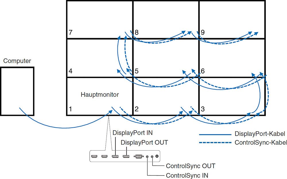 Der zweite DisplayPort dient nur als Ausgang. Damit lassen sich mehrere Geräte zum Daisy-Chaining verbinden.