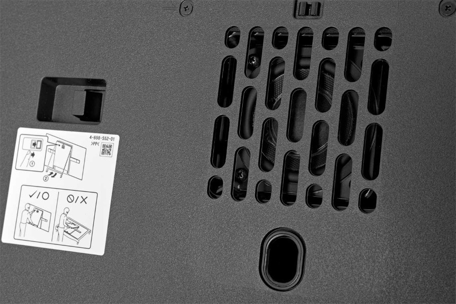 Designtechnisch ist der Sony KD-65A1 wirklich einzigartig, verzichtet er doch zum einen auf den klassischen Standfuß und weist zum anderen fast durchgehend eine Bautiefe von unter acht Millimetern auf. Die Elektronik wurde dabei in einen lediglich 40 Zentimeter breiten Bereich auf der TV-Rückseite sowie in die mit dem Fernseher verbundene Stütze integriert. Letztendlich bleibt also gar kein Platz mehr für ein gut klingendes Soundsystem. Aus diesem Grund nutzt der Bravia-OLED-TV den Bildschirm selbst als tönende Membran, die über jeweils zwei rückseitige Aktuatoren angeregt wird. Sony spricht hier von der Acoustic-Surface-Technologie; das Funktionsprinzip ähnelt dem der früheren NXT-Körperschallwandler. Nur tiefe Töne lassen sich damit nicht erzeugen, weswegen ein drei Zoll großer Bassreflex-Subwoofer in der Stütze den entsprechenden Frequenzbereich übernimmt. Er verdient seinen Namen dabei tatsächlich, werden doch schon ab 50 Hertz recht saubere Bässe reproduziert und ab 60 Hertz volle Pegel beigesteuert. Überraschend ist der maximale Schalldruck von 93 Dezibel bei 80 Hertz – so einen eleganten und gleichzeitig klangvollen Flachbild-Fernseher haben wir noch nicht erlebt.