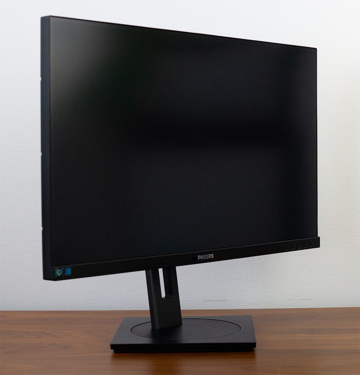 Die Höhenverstellung des Monitors ist angenehm leichtgängig, und auch das Gelenk zur Einstellung des Neigungswinkels ist gut justiert. Gleiches gilt für die Drehung in den Pivotmodus. Einmal in einer Position fixiert, bleibt diese erhalten. Der Standfuß des Philips 27B1U5601H bietet eine solide und sichere Basis. Das Display wird stabil gehalten und wackelt beim Bedienen nur geringfügig.