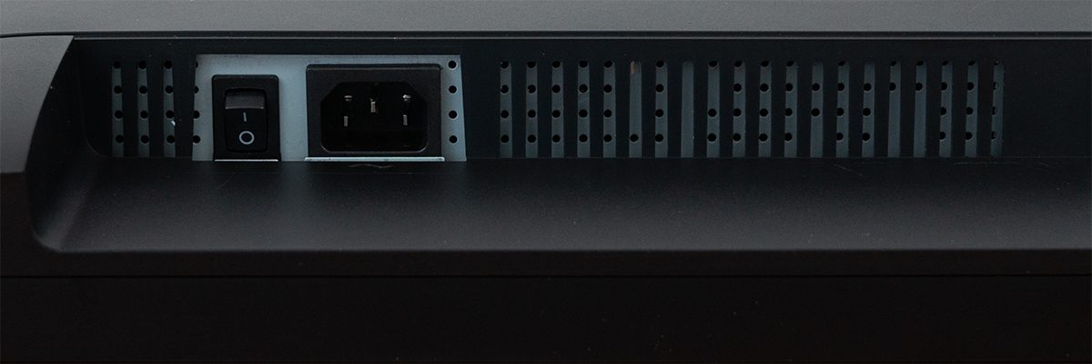 Ein Netzschalter, um den Monitor komplett vom Stromnetz zu trennen, ist ebenfalls vorhanden. Die EU-Energieeffizienzklasse gibt der Hersteller mit „F“ an. Bei 140 cd/m² am Arbeitsplatz zeigt das Messgerät 18,8 Watt an. Bei dieser Helligkeit errechnet sich eine Effizienz von 1,5 cd/W. Das ist in Betrieb ein hervorragender Wert.
