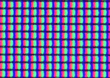 Mikroskopischer Blick auf die Subpixel mit Fokus auf der Bildschirmoberfläche: Der Philips 27B2G5500 besitzt eine matte Oberfläche mit mikroskopischen Vertiefungen zur Diffusion.