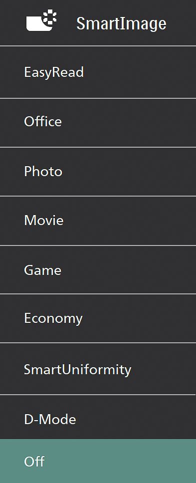 Eine durchgängige, konsequente Logik bei der Verteilung der Funktionen ist nicht überall erkennbar. So ist etwa die Option zur Verbesserung der Gleichförmigkeit unter „SmartImage“ einsortiert, einem Bereich, der ansonsten eher an klassische Bildmodi erinnert. Diese Funktionen sind zudem nicht über das Hauptmenü, sondern nur über die Schnellauswahl erreichbar. Inhaltlich handelt es sich dabei um Bildoptimierungen, die zusätzlich zu den unter „Farbraum“ geführten Presets wirken können – was die Struktur nicht unbedingt transparenter macht.