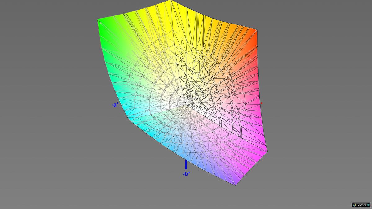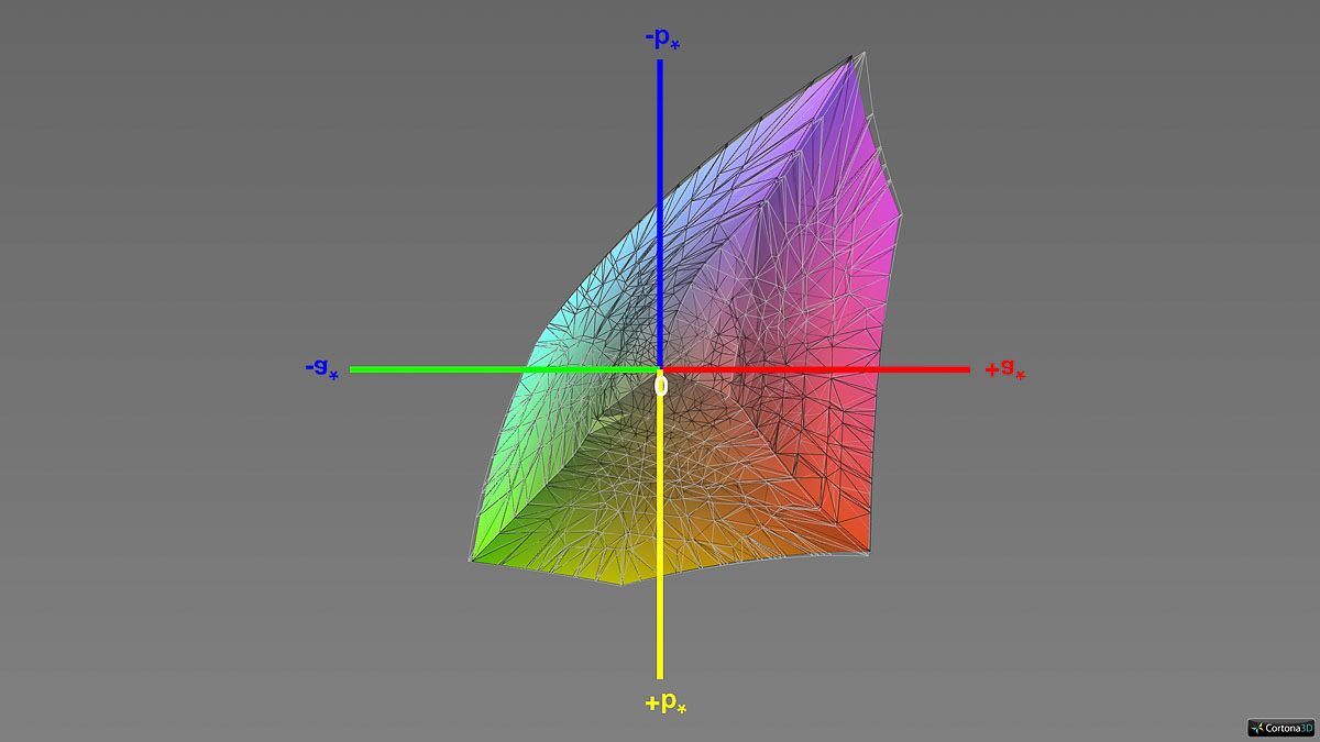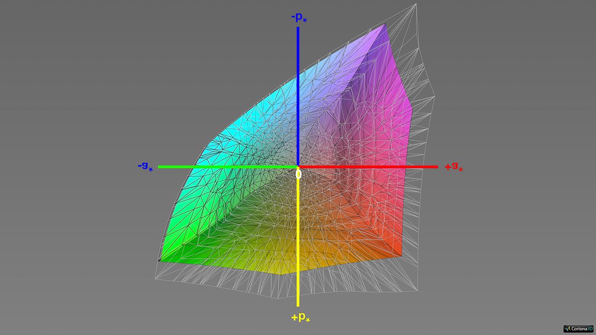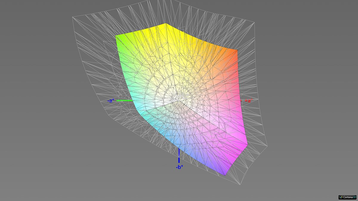 Eine relevante Unterdeckung zeigt sich lediglich im Vergleich mit dem besonders weit gefassten ECI-RGB-Farbraum. Doch selbst dieser wird zu beachtlichen 91 % erfasst – in anderen Bereichen wird seine Abdeckung sogar deutlich übertroffen.