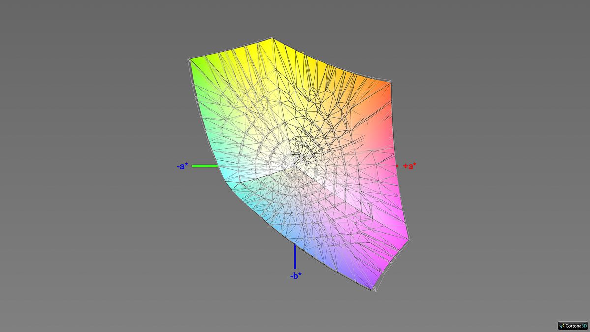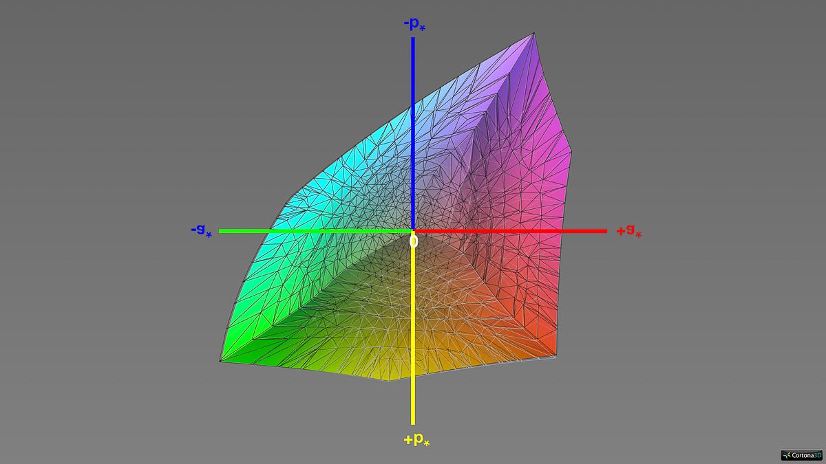 Die Einstellung „Display P3“ lässt zunächst eine Beschränkung auf den gleichnamigen Zielfarbraum vermuten. Anders als im DCI-P3-Modus ist das hier jedoch nicht der Fall. Tatsächlich zeigt sich in der Praxis, dass in diesem Modus der native Farbraum des Panels genutzt wird. Angesichts dessen haben wir diese Einstellung als Basis für die Software-Kalibrierung verwendet.