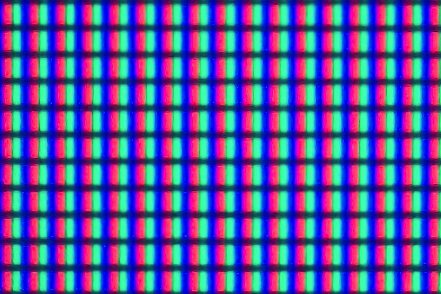 Ein mikroskopischer Blick auf die Subpixel mit Fokus auf die Bildschirmoberfläche zeigt: Der Philips 27M2N3501PA verfügt über eine mittelstark entspiegelte Oberfläche.