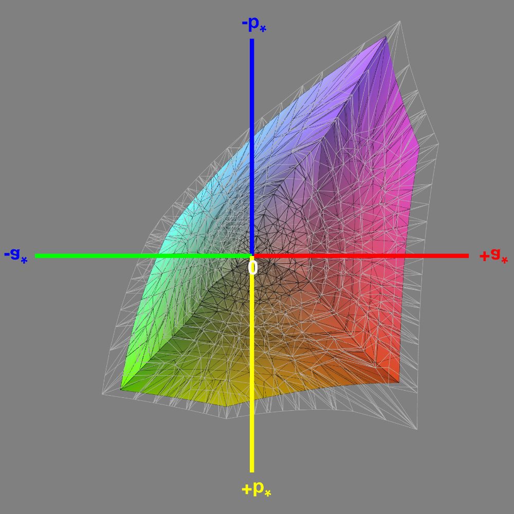 Ein fehlender Farbumfang wird durch ein schwarzes Gitter gekennzeichnet, eine größere Abdeckung durch ein hellgraues.
