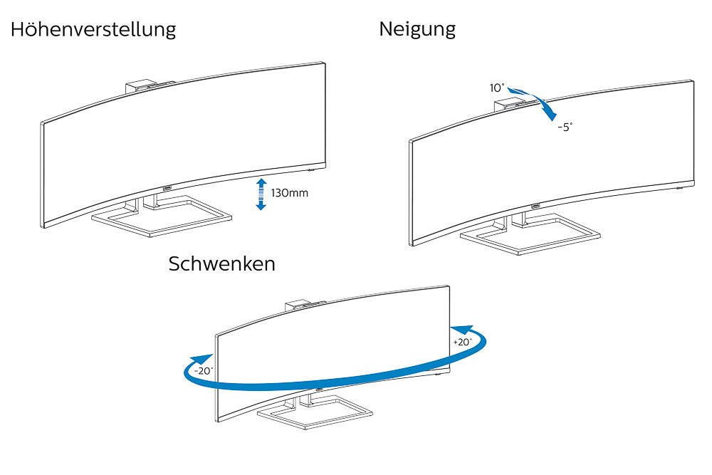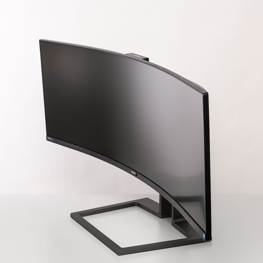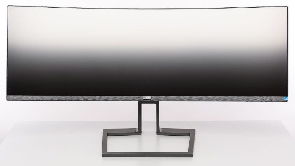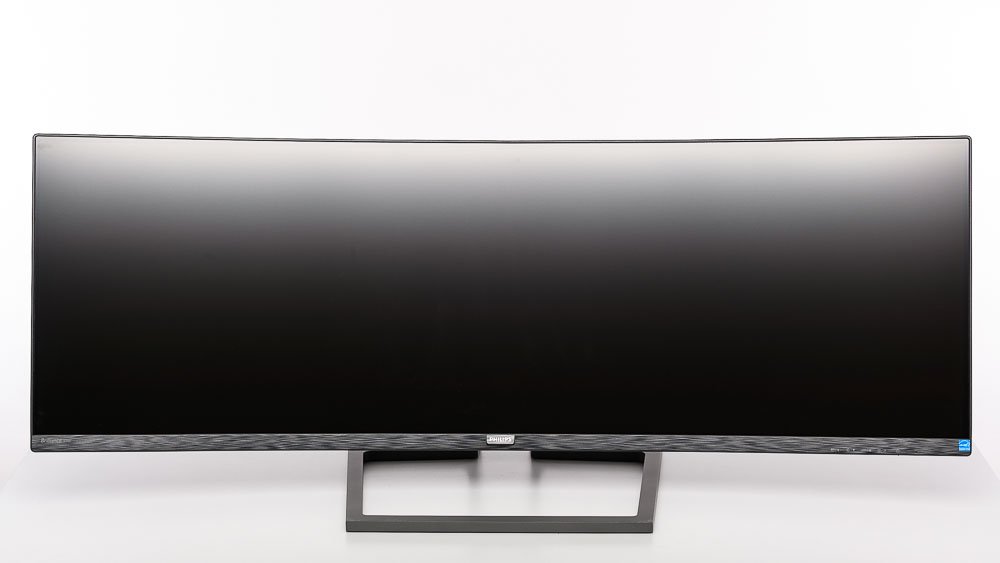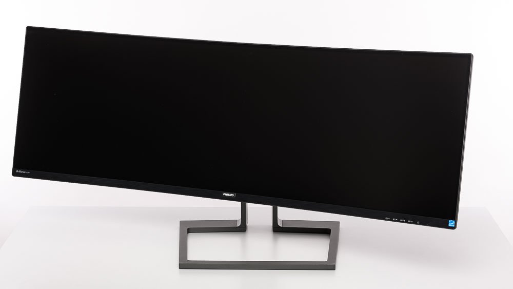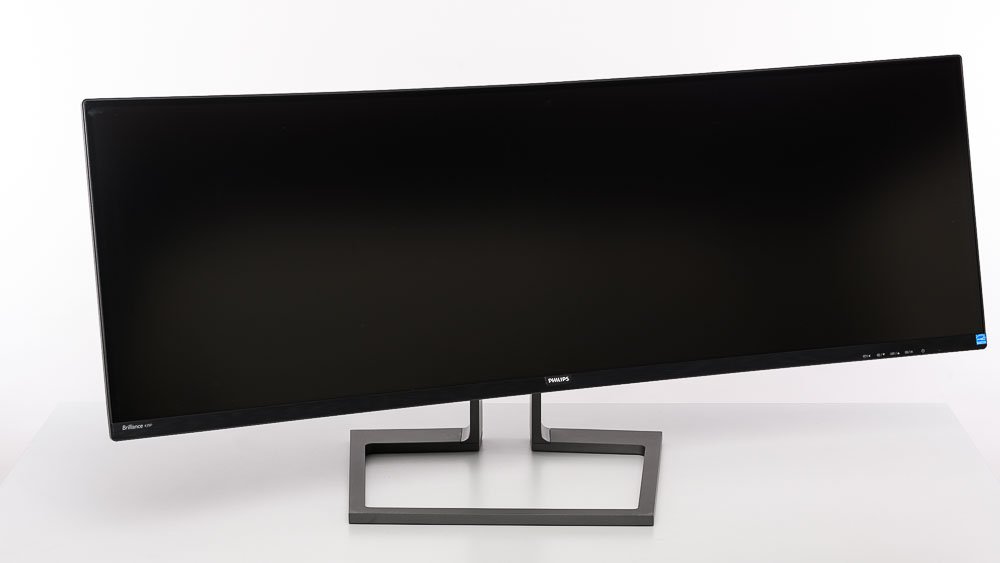 Zusammen mit dem Standbein wiegt der Philips 439P9H knapp 14,4 kg. Hat man das Gerät erst mal auf den Schreibtisch gewuchtet, kann man in Ruhe die Flügelspannweite von 106 cm bewundern. Gängige Schreibtische mit 1,2 m Breite füllt die Display-Fläche des 32:10-Boliden fast vollständig aus.