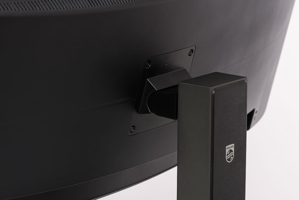 Die Gewinde entsprechen dem VESA-Standard, sodass sich der Philips 439P9H auch leicht an der Wand oder auf einem Schwenkarm montieren lässt. Ein zusätzlicher Adapter ist dazu – soweit ersichtlich – nicht erforderlich.