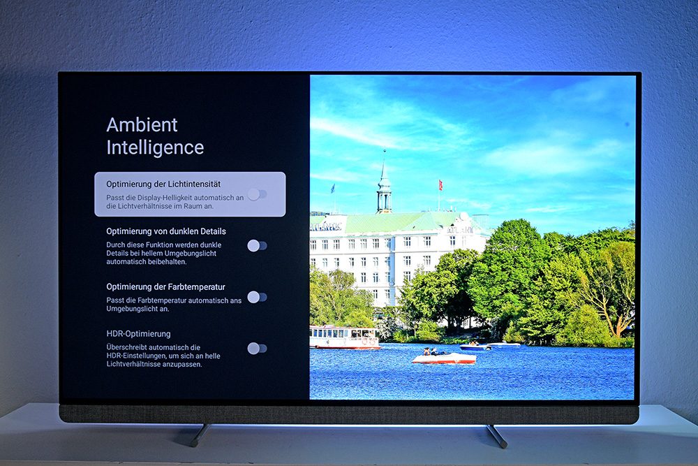 Zur Übersichtlichkeit trägt es wie schon beim Vorgängermodell nicht bei, dass die Umgebungslichtanpassung mehrfach an verschiedenen Stellen im OSD vom Philips 55OLED910/12 vorhanden ist.