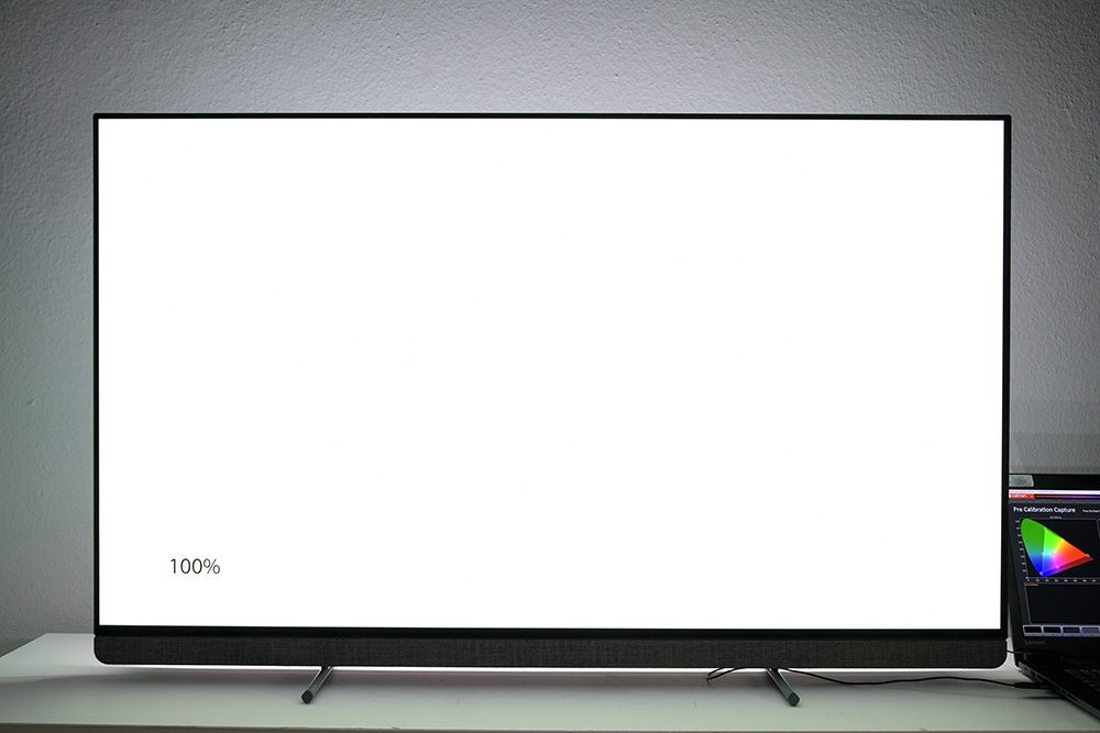 Mit HDR-Inhalten und der aktivierten „Lichtverstärkung“ beträgt die Lichtausbeute out of the Box 1981 cd/m². Kalibriert erhöht sich die Leuchtdichte auf exzellente 2224 cd/m². Diese Werte ermitteln wir in einem 25 % großen Fenster. Nutzen wir das „1 % ADL-Testpattern“, steigt der Wert auf sagenhafte 4050 cd/m². Heller haben wir noch keinen anderen OLED-TV gemessen. Diese hohe Helligkeit hält der Proband mehrere Sekunden aufrecht und fällt erst nach 15 Sekunden langsam ab. Das dynamische OLED-Dimming hat Philips überhaupt wieder sehr defensiv programmiert, sodass hohe Lichtausbeuten länger Bestand haben. Im Vergleich zum Vorgängermodell hat unser aktuelles Test-Sample eine deutliche Schippe draufgelegt.