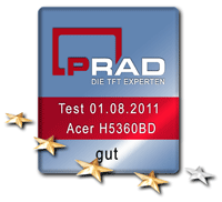 In der 3D-Einstellung kann der Acer H5360BD mit einer Bildfrequenz von 120 Hz arbeiten und 3D-Material darstellen. Dabei zeigt der Monitor nicht 60, sondern 120 Bilder pro Sekunde, die abwechselnd für das linke und das rechte Auge gedacht sind. Für die korrekte Zuordnung der Bilder sorgt eine Shutterbrille.