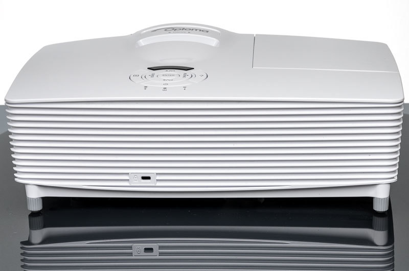 Auch optisch dürfte der GT1080 nicht nur Technikbegeisterte überzeugen, sondern auch einen guten WAF (Woman-Acceptance-Faktor) erzielen. Von vorne nicht zu übersehen ist das große Weitwinkel-Objektiv, das Kennern bereits verrät, dass es sich hier um einen Kurzdistanzprojektor handelt.