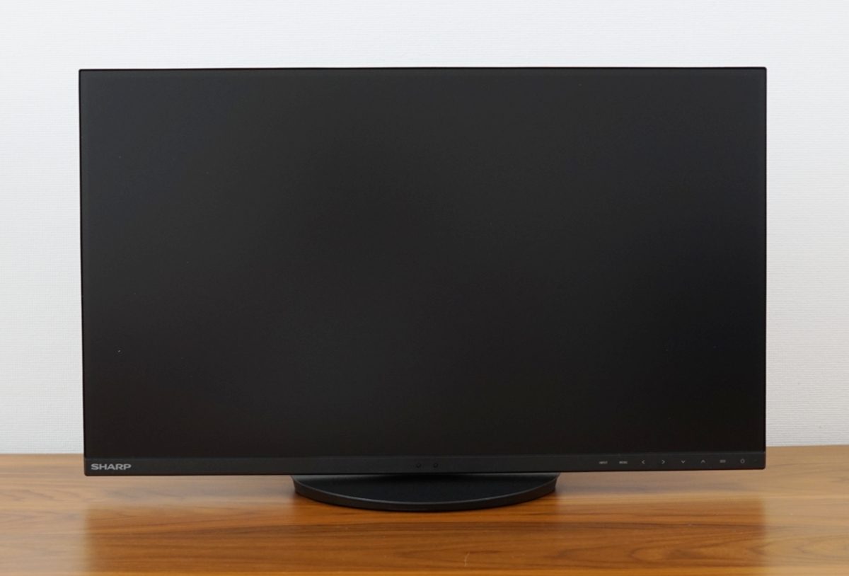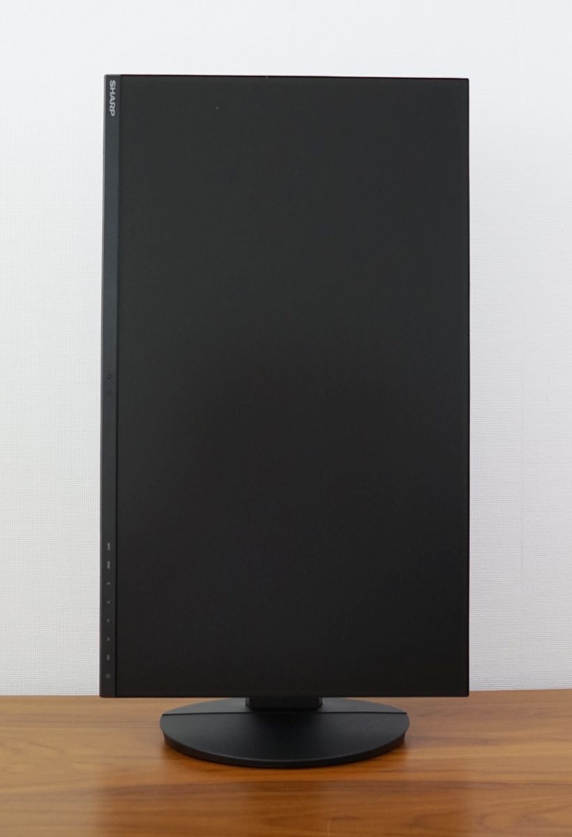 Der Sharp EA272Q präsentiert sich äußerlich dezent und fügt sich nahtlos in jede Arbeitsumgebung ein. Dies wird insbesondere durch das dreiseitige rahmenlose Design ermöglicht. Der umlaufende Rahmen hat eine Breite von 1 mm. Hinzu kommt der Panel-Rand von 6 mm, bis das eigentliche Bild beginnt. Der untere Rahmen beträgt 1,5 cm und der Panel-Rand noch mal 1 mm. Die Materialhaptik wirkt allerdings etwas kostenoptimiert, insbesondere beim Standfuß.