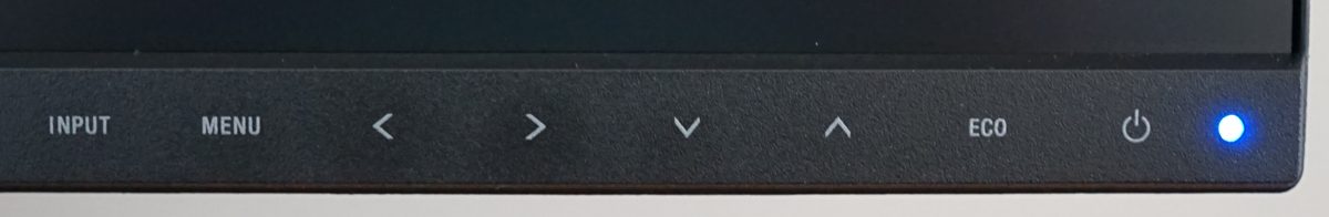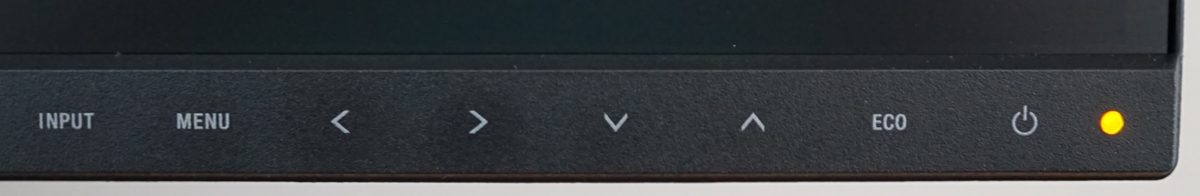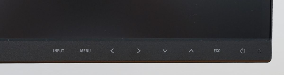Der Sharp EA272Q verfügt über sechs elektrostatische Bedienelemente für die Steuerung, die links neben dem in der rechten Ecke platzierten Power-Button zu finden sind. Die Bedienung mit den Touchtasten ist sehr gut gelungen. Sie agieren sehr reaktionsschnell und lassen sich angenehm und zuverlässig bedienen. Eine akustische Rückmeldung ist nicht vorhanden. Es reicht allerdings, irgendein Bedienelement zu berühren, wodurch die einzelnen Funktionen auf der Bildschirmoberfläche eingeblendet werden. Die Beschriftung der Tasten ist bei reduzierter Helligkeit im Raum nur noch schlecht zu erkennen, allerdings lässt sich das OSD durch die eingeblendeten Funktionen auch bei Dunkelheit bedienen. Sharp verzichtet auf den heute häufig verwendeten 5-Wege-Joystick, der eine bequeme Bedienung ermöglicht. Solange die Bedienung so optimal funktioniert, vermissen wir ihn aber nicht.