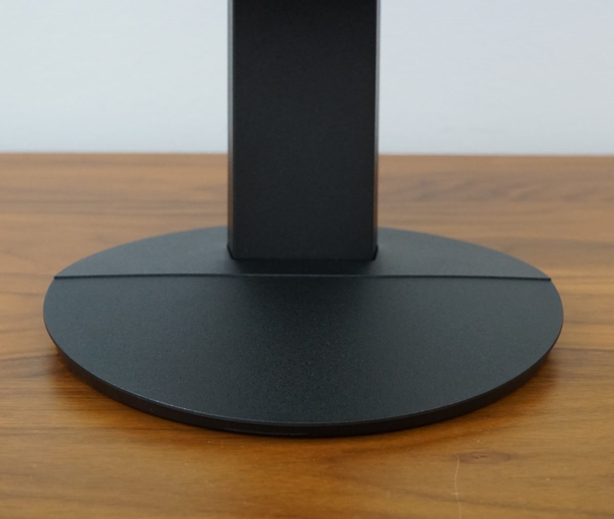 Um den Sharp EA272Q stabil an seinem Platz zu halten, ist an der Unterseite des Standfußes umlaufend eine Gummierung angebracht. Sie soll verhindern, dass der Bildschirm beim seitlichen Drehen verrutscht. Das funktioniert tadellos, und eine Drehung des Monitors mit nur einer Hand ist problemlos möglich. Der Standfuß hat einen Durchmesser von ca. 26 cm und ist nach vorn hin abgeflacht.