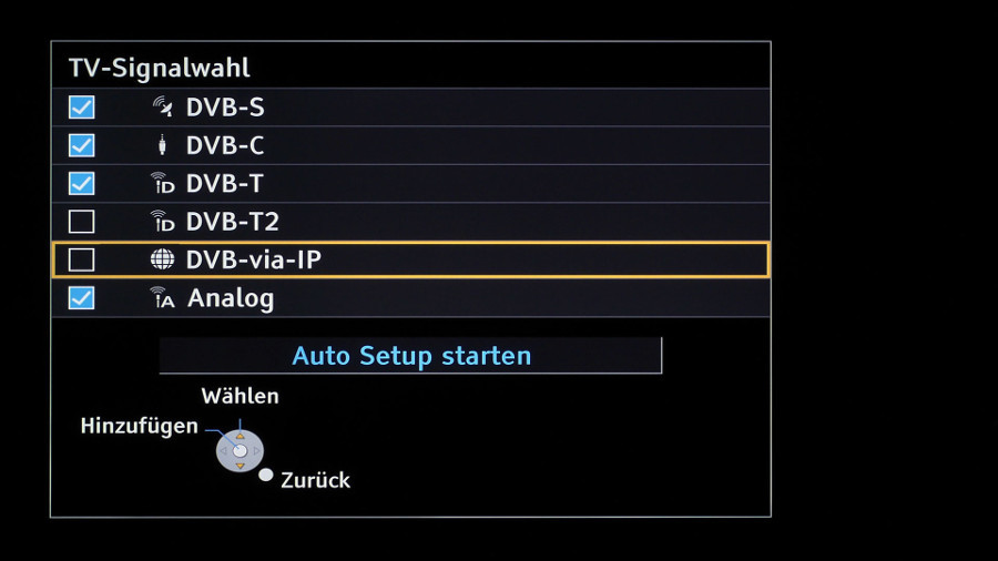 Ebenso beherbergt das Gerät einen Twin-Tuner inklusive USB-Recorder und zweier CI+ Einschübe. Auf diese Weise können mehrere (Pay-)TV-Programme gleichzeitig mitgeschnitten und wiedergegeben werden. Natürlich darf die Sat- respektive TV-IP-Technik nicht fehlen. Anders als der untergeordnete Bruder besitzt zusätzlich zum Client (Empfänger) einen Server, der die TV-Signale des Tuners ins Netzwerk einspeist; eine separate Settop-Box wird damit überflüssig. Hat man den Panasonic TX-55AXW904 korrekt eingebunden, gestattet er also anderen TV-IP-kompatiblen Fernsehern oder sogar Mobilgeräten (mithilfe entsprechender Apps) den TV-Empfang via WLAN oder Ethernet-Kabel.