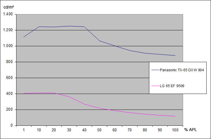 Um es gleich auf den Punkt zu bringen: Klassisches TV-Material und Kinofilme von DVD oder Blu-ray Disc sehen auf dem 65-Zöller ebenfalls fantastisch aus. Mit seinen Helligkeitsreserven von bis zu 1.153 Candela pro Quadratmeter stellt er alle bislang getesteten Fernseher buchstäblich in den Schatten. Zwar schafft der KD-75X9405C aus dem Hause Sony (Link zum Testbericht) noch gut 160 Candela mehr, allerdings nur im blaustichigen Bildmodus „Brillant“. Bei Panasonic hingegen beruhen die Werte auf dem farbneutralen Preset „Professionell 1“. Im vollflächigen Weißbild sinkt die Ausbeute auf immer noch hervorragende 816 Candela; dreht man den Kontrastregler komplett auf, liefert die Full-LED-Hintergrundbeleuchtung stolze 980 Candela.