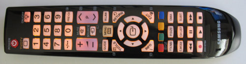 Der Samsung LE-32A656A1F verfügt auf der linken Seite unten am Rahmen über sieben Sensortaste, die leider selbst unter guten Lichtbedingungen kaum zu erkennen sind. Der LCD-TV verfügt natürlich auch über eine Fernbedienung, die sehr gut funktioniert und das selbst dann, wenn man diese z.B. in Richtung Decke hält.