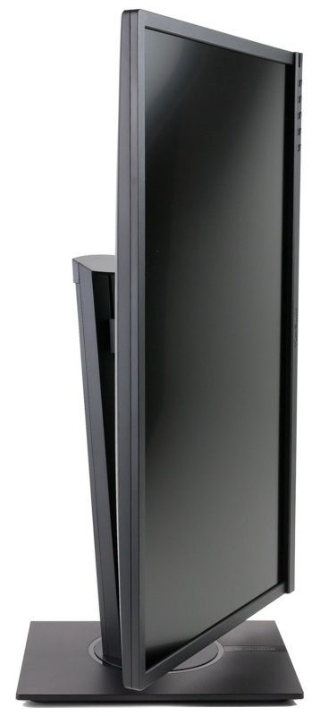 Ein Betrieb im Pivot-Modus ist ebenfalls möglich – und zwar in beide Richtungen. Der Bildschirm kann also um 90 Grad nach links oder rechts gedreht werden. Er rastet dabei an keiner Stelle ein, kann aber auch nicht weit überdreht werden.