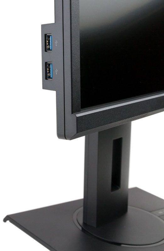 Die seitlichen Anschlüsse liegen auf einer Ebene mit dem Monitorrahmen und lassen sich daher in der Praxis sehr gut nutzen. Sie können entweder sehr gut erfühlt oder der Bildschirm kurz geschwenkt werden, um die Schnittstellen zum Beispiel mit einem USB-Stick zu nutzen. Auch in diesem Bereich wurde der 3.2-Standard verbaut.