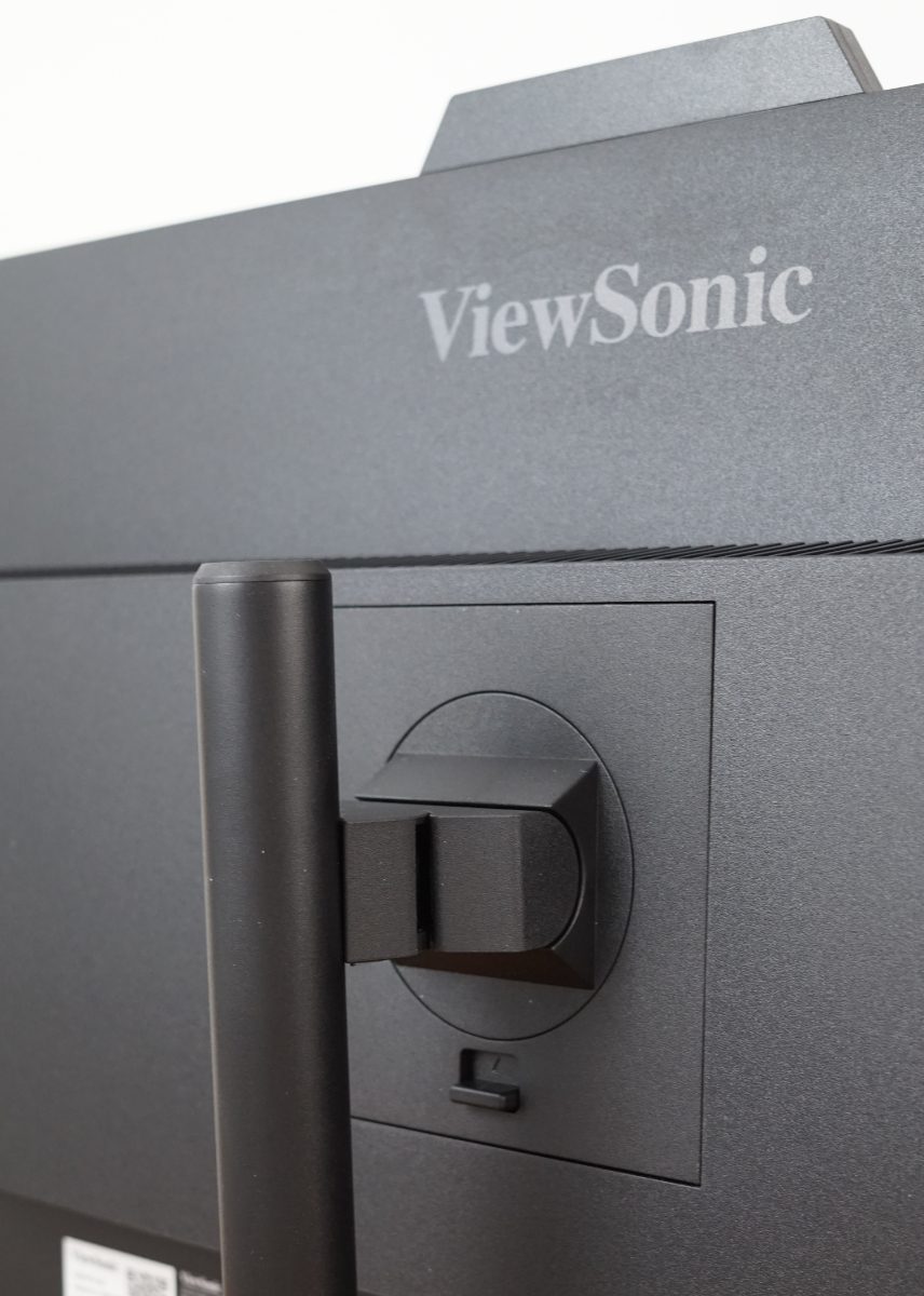 Beim ViewSonic VG2741V-2K ist das Netzteil im Gehäuse integriert, einen Netzschalter besitzt der Monitor nicht. Oberhalb des Erkers befinden sich Lüftungsschlitze. Eine Erwärmung der Rückseite war jedoch selbst nach mehrstündigem Betrieb nicht feststellbar.